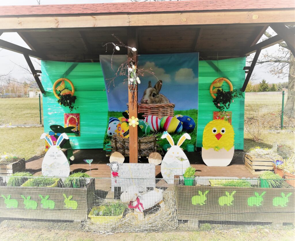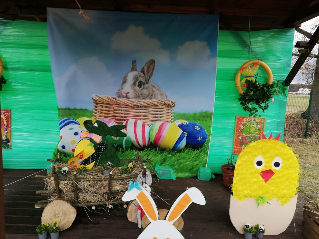 Kwiecień w „Etezji” upłynął pod znakiem przygotowywania się do świąt wielkanocnych m.in. dzięki zaangażowaniu personelu powstała wioska zajączka wielkanocnego w której można było spotkać kurczaka, baranka, zajączki oraz wspaniały wielkanocny wóz. Wioska została wzbogacona posianym przez nas w marcu owsem, rzeżuchą i kwiatkami. Cieszyło nas to, że mogliśmy podzielić się naszymi pomysłami i energią, tworząc coś miłego dla naszych mieszkańców. W okresie okołoświątecznym powstały prace zarówno na kartce papieru jak i na chodniku- nieważne na czym i gdzie, ważne, że były okazją do wyrażenia siebie i pokazania swojej interpretacji świąt😉.