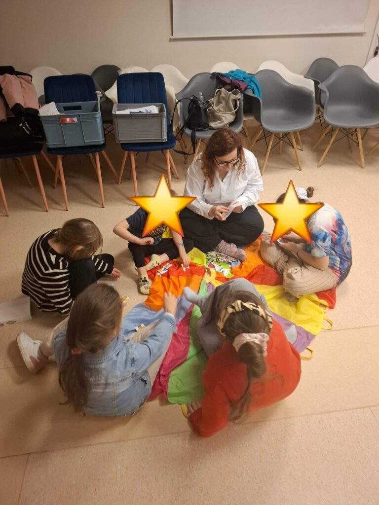 A to za sprawą naszych feryjnych działań, czyli warsztatów kreatywnych połączonych z grami i animacjami prowadzonymi przez Animatorów. Podczas warsztatów dzieci miały możliwość uczestnictwa w podchodach z wykorzystaniem zadań sportowych, tworzyły piękne prace plastyczne, kolorowe mandale oraz ramki DIY. Szczególnym zainteresowaniem cieszyły się warsztaty „Kolorowe laboratorium – magiczne eksperymenty” podczas których powstały cudowne doświadczenia z kolorami i uwielbiany przez dzieci eksperyment „wulkan”. W ramach niespodzianki dzieci skręcały również balony, w wyniku czego powstały piękne kwiaty, zwierzęta i inne, ciekawe kształty. Animacje, gry i zabawy integracyjne to był po prostu strzał w dziesiątkę!