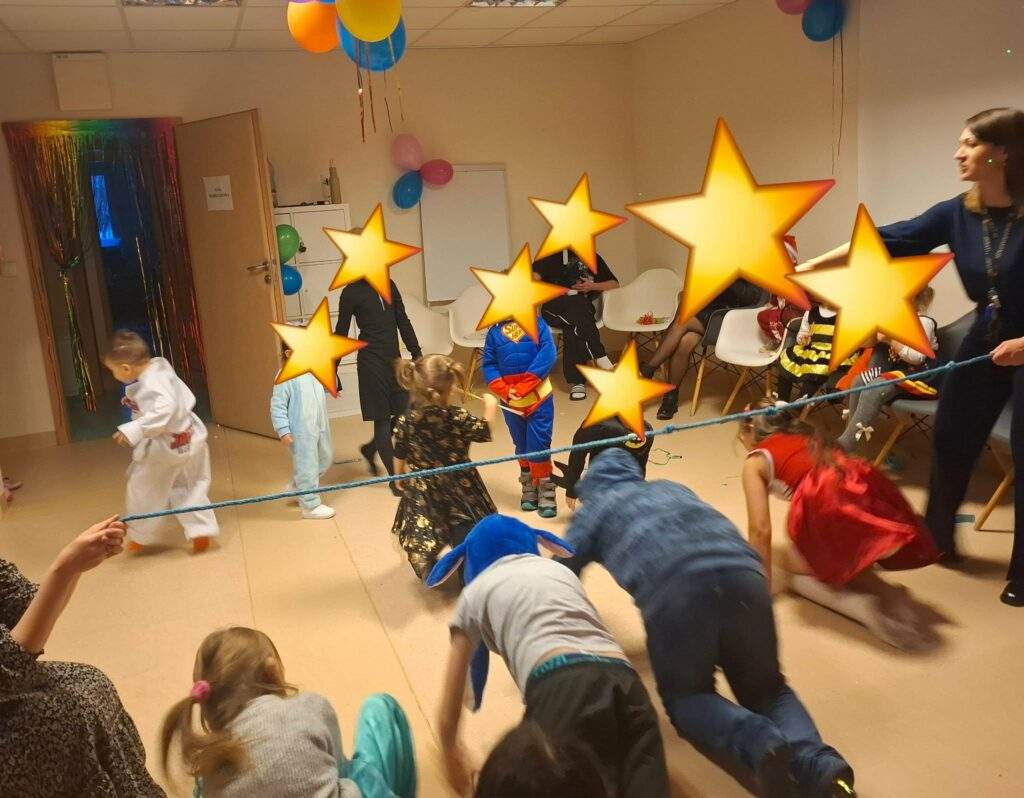 Na zakończenie ferii w naszym Domu zrobiło się wyjątkowo kolorowo i radośnie! Na sali warsztatowej odbył się bal karnawałowy. Pięknie udekorowana sala szybko zamieniła się w prawdziwy parkiet taneczny! Było mnóstwo tańca, śmiechu i dobrej zabawy. Dzieci z radością pląsały przy muzyce, a uśmiechy nie schodziły im z twarzy. Szczególnym zainteresowaniem dzieci tego dnia cieszyła się wata cukrowa oraz popcorn! Wydarzenie to było świetną okazją do integracji i wspólnego świętowania karnawału w radosnej atmosferze.